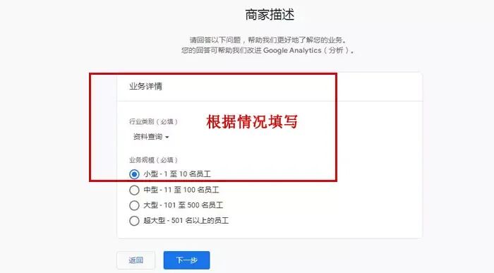 步骤四:商家描述,选择网站对应的行业类别,以及企业的员工人数。