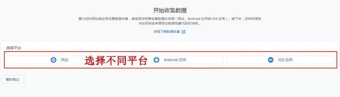 ① 选择平台,包括有网站,以及应用,这里我们选择网站。