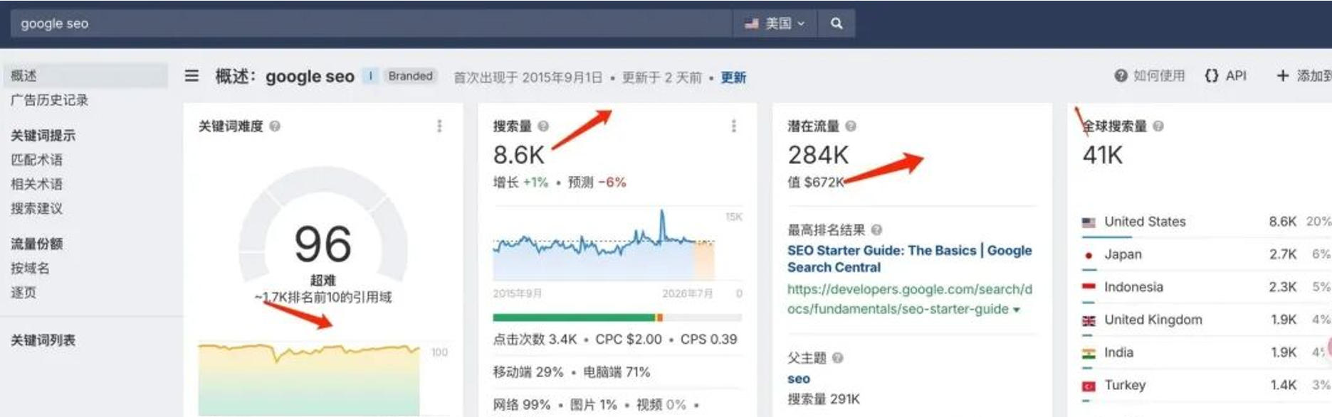 2. 用 Ahrefs / Semrush验证搜索量和潜力流量。