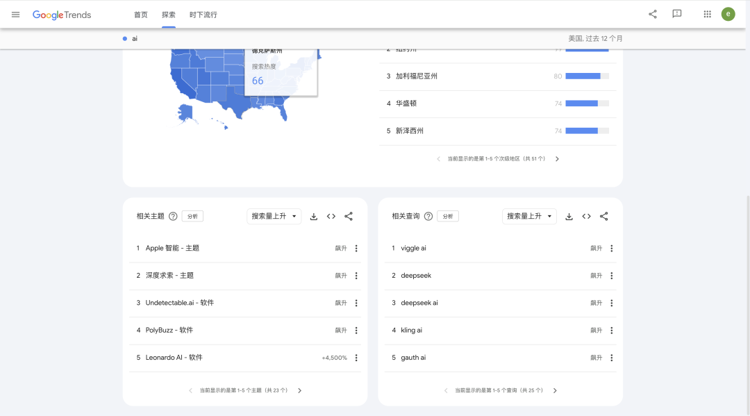 新的飙升的词他也是一个不错的词根,因为它的流量在上涨。你找他的相关查询的时候,会把这个词流量上升的同时大家都在google搜索的相关的词一起放进去